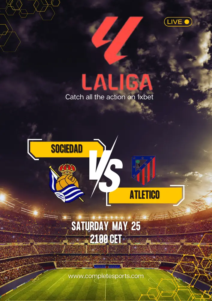 Real Sociedad welcomes Atlético Madrid starting on 25th May 2024 at Reale Arena stadium, for a LaLiga clash.