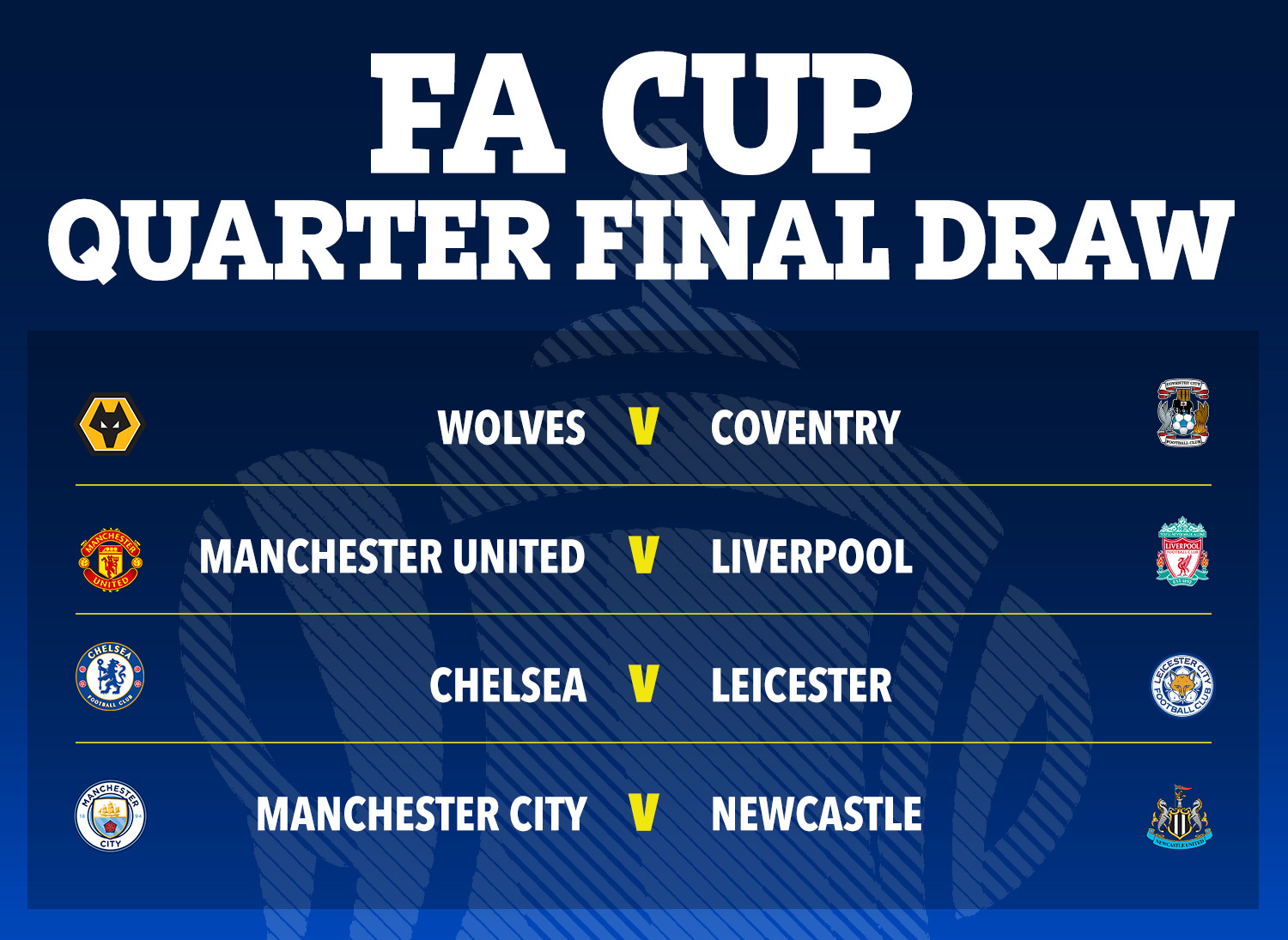 Full FA Cup Quarterfinal Draw: