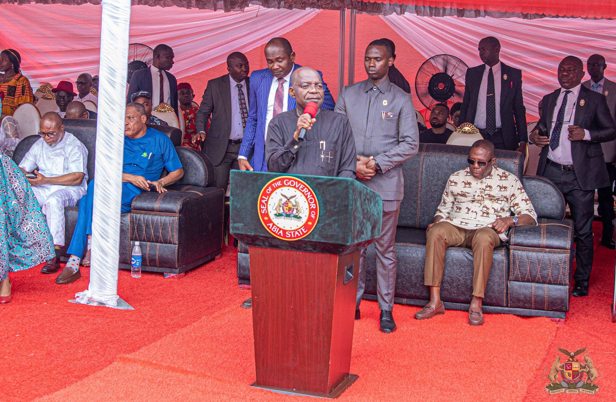 The Governor was joined by the member representing Ikwuano/Umuahia Federal Constituency, Hon. Obi Aguocha, the Speaker of the Abia State House of Assembly, Rt. Hon. Emmanuel Emeruwa, the mayor of Aba North LGA, Hon. Timothy Iheke, the mayor of Aba South LGA, Hon. Obilor Anyanwu, the Honourable Commissioner for Environment, Hon. Philemon Asonye Ogbonna, and the former President of the Chartered Institute of Accountants, Chief Onyeuku Chidi Ajaegbu among others.